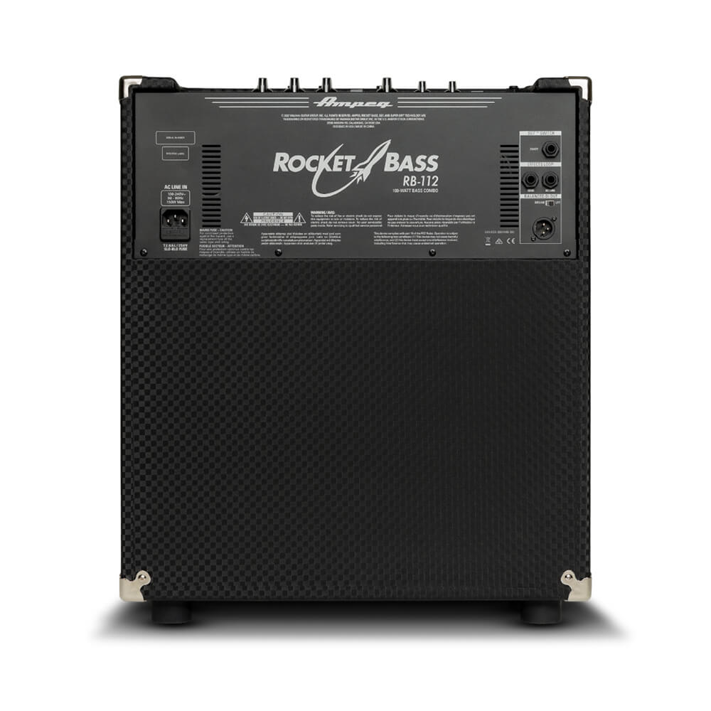 The 100-watt Ampeg® Rocket Bass® RB-112 combo bass amp offers unparalleled performance, stunning ’60s-style looks, and a robust feature set in a light and portable package —making it the ideal amp for practicing, performing, and recording. Like its legendary larger siblings, the RB-112 combo offers classic Ampeg 3-band EQ and Ultra Hi/Ultra Lo switches, which tone aficionados know are critical to sculpting the perfect bass sound. Plus, a newly designed switchable Super Grit Technology™ overdrive circuit with independent Grit and Level controls adds warm and gutsy growl. An auxiliary input lets you play along with external audio! while a headphone output ensures youll be able to practice whenever you like. The XLR direct output provides a professional connection to a P.A. or recorder.