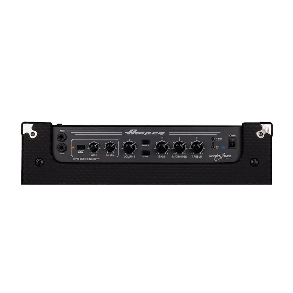 The RB-112 bass amplifier comes equipped with proprietary Super Grit Technology overdrive circuitry, with independent Grit and Level controls, which provides more of the warm and gutsy growl that defines the coveted Ampeg tone. Combined with the famed Ampeg 3-band EQ and Ultra Hi/Ultra Lo switches, SGT enables you to create your ideal bass sound.