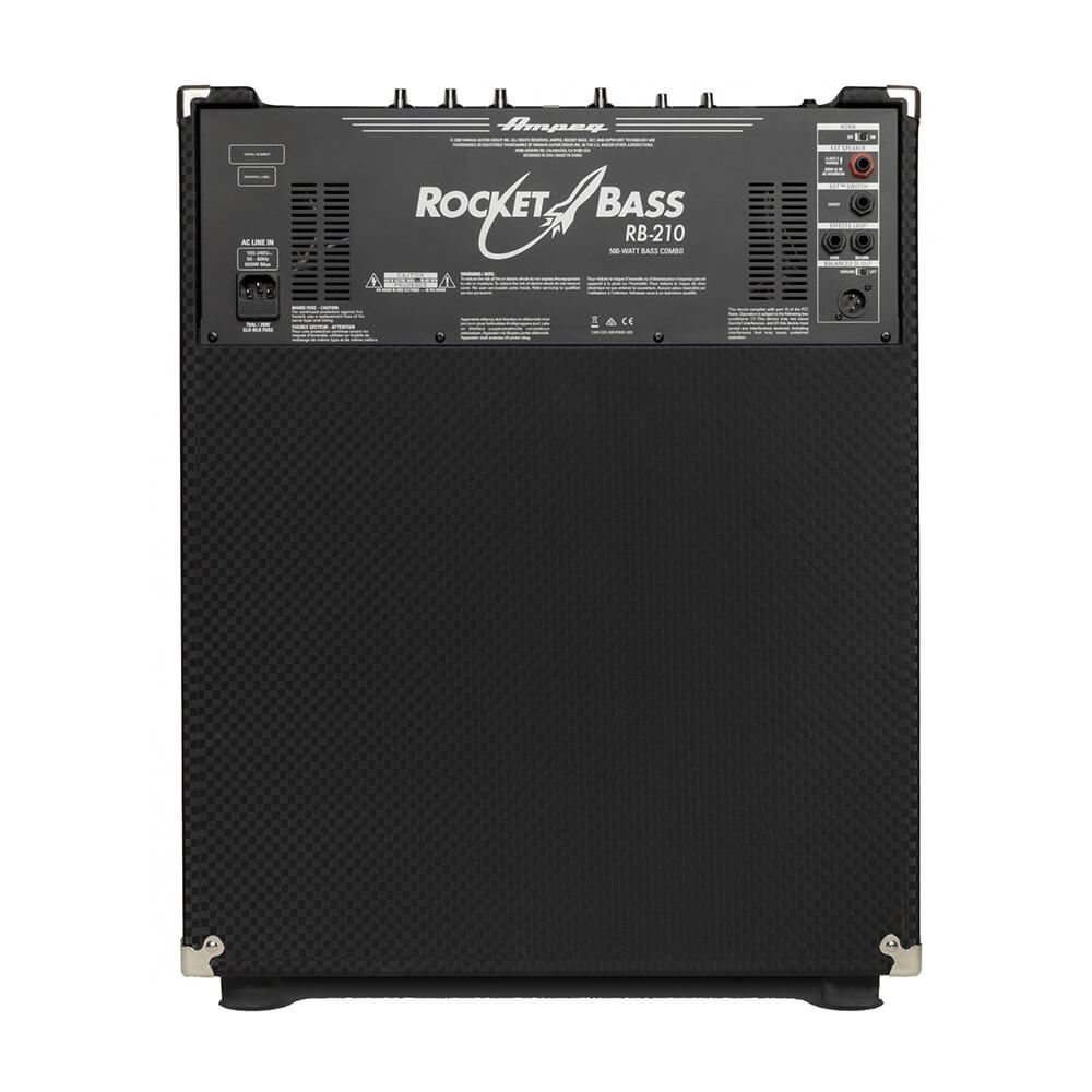 The 500-watt Ampeg® Rocket Bass® RB-210 combo bass amp offers unparalleled performance, stunning ’60s-style looks, and a robust feature set in a light and portable package —making it the ideal gigging amp. Like its legendary larger siblings, the RB-210 combo offers classic Ampeg 3-band EQ and Ultra Hi/Ultra Lo switches, which tone aficionados know are critical to sculpting the perfect bass sound. Plus, a newly designed switchable Super Grit Technology™ verdrive circuit with independent Grit and Level controls adds warm and gutsy growl. A mutable high-frequency horn complements the dual 10n Eminence® speakers. An effects loop and extension speaker output add flexibility, an auxiliary input lets you play along with external audio, a headphone output ensures youll be able to practice whenever you like, and the XLR direct output provides a professional connection to a P.A. or recorder.