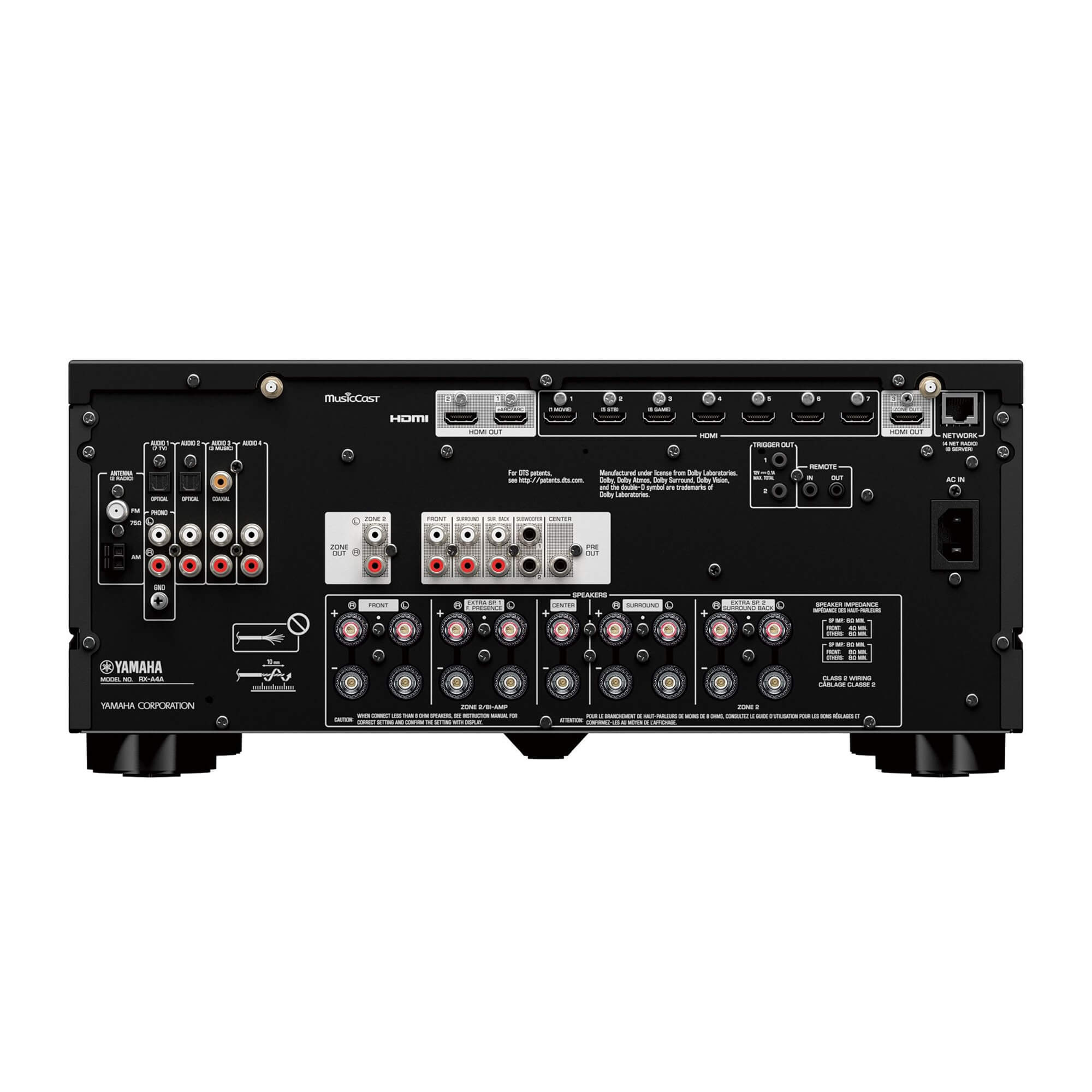 - Wi-Fi, Bluetooth®, MusicCast multi-room audio, AirPlay 2 and Spotify Connect