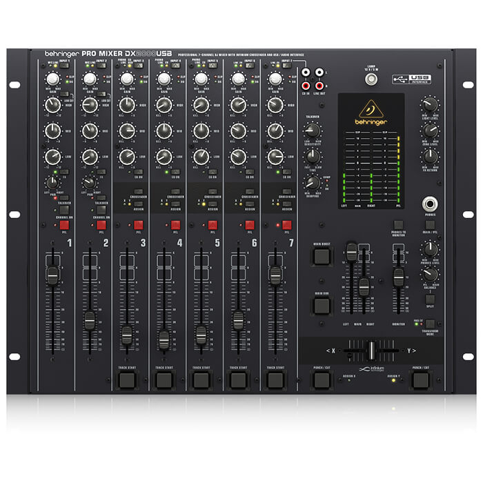 These days, a DJ commands a whole lot more than just a mic and a couple of turntables! On any given gig you may be required to accommodate a multimedia presentation, variety of audio platforms (vinyl, CDs, mp3) and multiple mics. That’s why we proudly present the 7-channel PRO MIXER DX2000USB with its fully-adjustable infinium “Contact-Free” Crossfader and built-in USB/audio interface. Now the DJ who wears many hats – is always ready for anything!