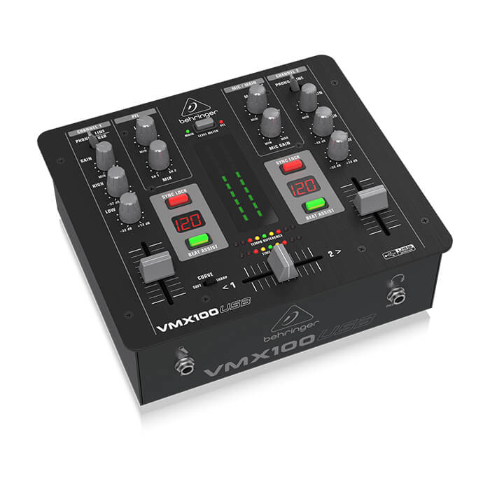 The 2-channel VMX100USB DJ Mixer is designed to connect directly to your computer and take your music straight into the digital realm. In an instant, the VMX100USB allows you to record and play any digital music file from your PC or Mac* computer – with no setup drivers required!