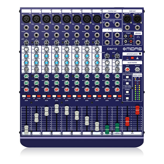 No matter what your audio mixing needs, the DM12 provides the performance and features required to take your talent to the next level, at a price that is custom-tailored for the budget-savvy user. Professional sound quality, our legendary Midas mic preamps, 3-band EQs with sweepable mids, and much more make the DM12 mixer ideal for both your live gigs and recording. Try one out today, or feel free to order yours online.