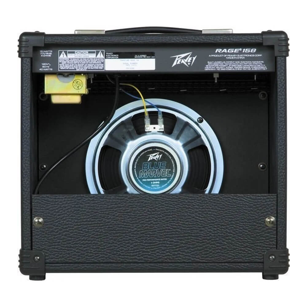 The Peavey Rage 158 15W Guitar Amplifier features 2 channels and 2 radically different voicings — Modern and Vintage. The Modern position maintains a warm, standard voicing while the Vintage position adds a hint of brightness to emulate some classic amp designs. Pre and post gain knobs, 3-band EQ, a headphone jack, and a tape or CD input make this hard-hitting little amp perfect for back porch jamming or solo practice.