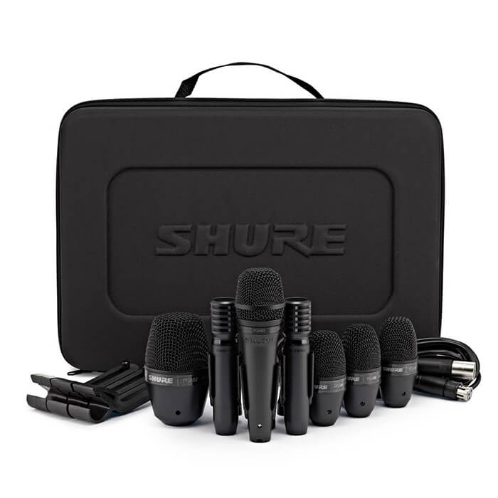 The PGADRUMKIT7 Drum Microphone Kit is a complete package of professional quality microphones, designed to provide excellent sound for full drum kit performance and recording. Included in the PGADRUMKIT7 are one PGA52 kick drum microphone, three PGA56 drum microphones, one PGA57 instrument microphone and two PGA81 instrument microphones, along with three drum mounts, seven XLR-XLR cables, and a carrying case.