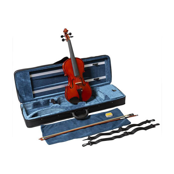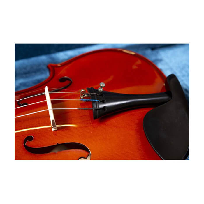 4/4 violin, spruce top, solid wood back and side, ebony fingerboard and pegs. Metal tailpiece with 4 finetuner. Black foam case, ebony frog bow, Rosin