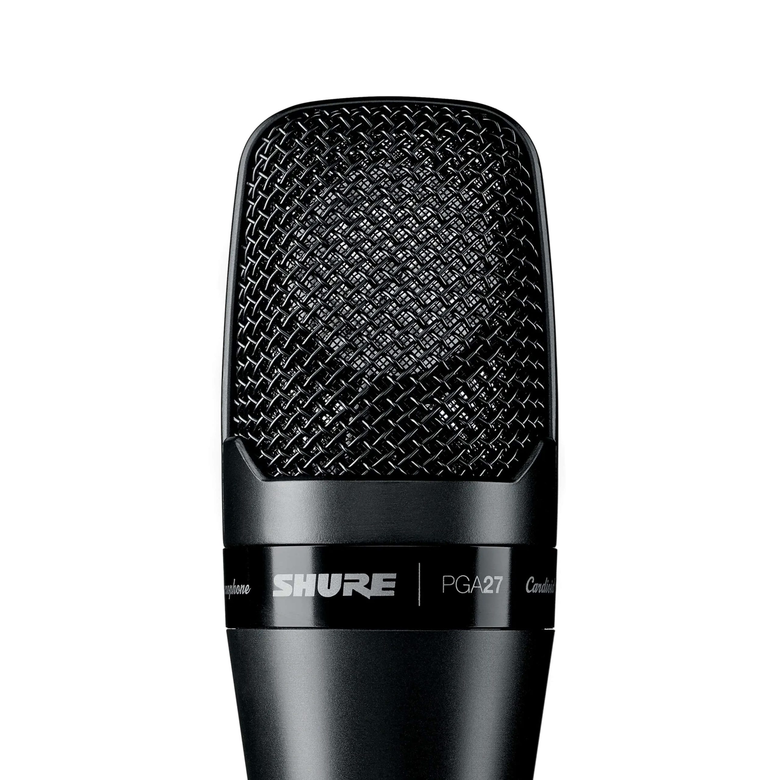 The PGA27 is a professional quality large diaphragm condenser microphone with an updated design featuring a black metallic finish and grille offering an unobtrusive visual presence. Legendary Shure quality construction ensures exceptional performance in rigorous environments.
