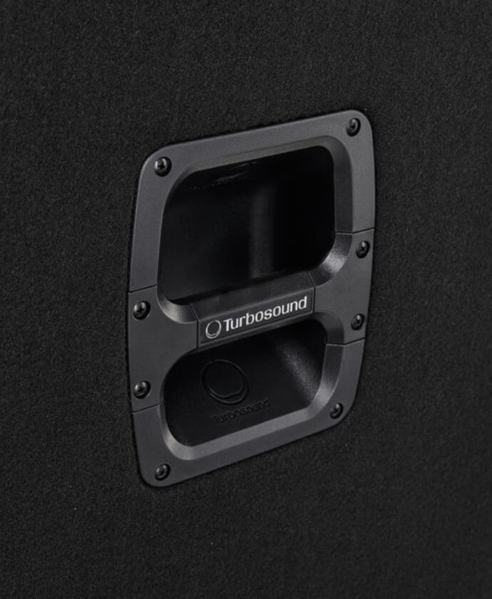 Covered in hard wearing black carpet, the cabinet is of 18 mm (¾ “) wood construction – and includes a rugged powder coated perforated steel mesh grille backed with reticulated foam, and durable handles for easy transport. The rear panel connector plate carries Neutrik speakON * NL4 connectors for input and link connections to additional enclosures.