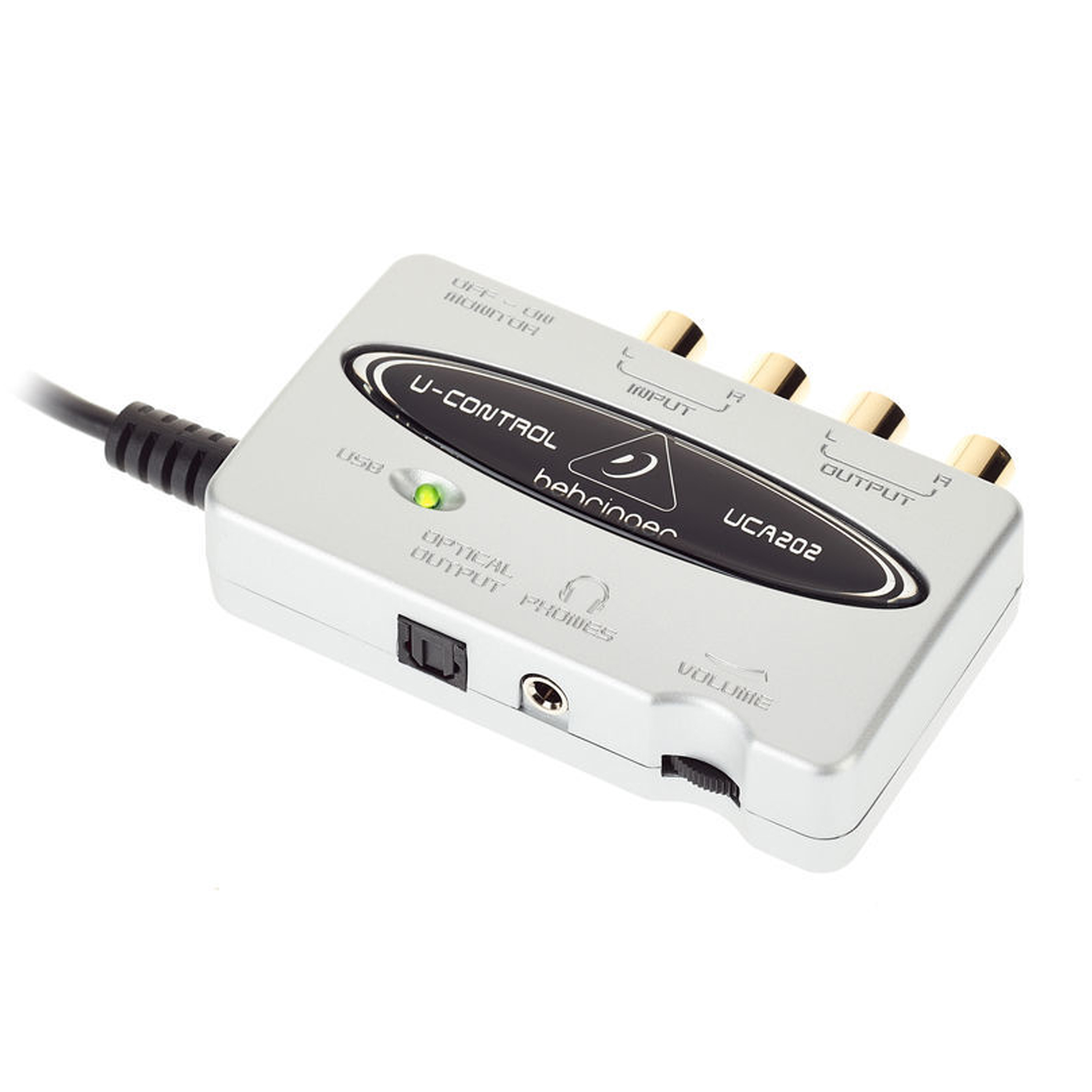 The BEHRINGER UCA202 allows you to connect instruments and other audio devices to your computer, effectively merging the analog and digital worlds. It accomplishes this by providing two analog mono Inputs and Outputs (for monitoring), USB connectivity and an additional S/PDIF optical output. The stereo headphone output features a dedicated level control and lets you listen to both the input and output. We even give you all the software you’ll need to get started!