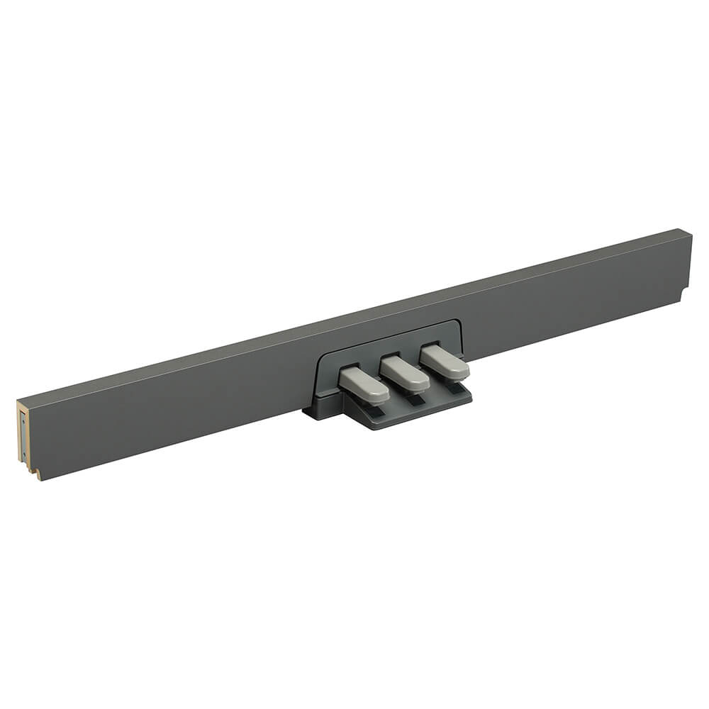 Three piano-style pedals for the same kind of functional sustain, sostenuto and soft control found on grand pianos with half-damper effect.