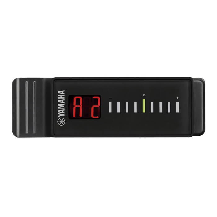 The Yamaha Clip-on Tuner YTC10 is a Vibration Sensor Tuner that tunes a musical instrument by sensing the vibration generated when a musical note is produced